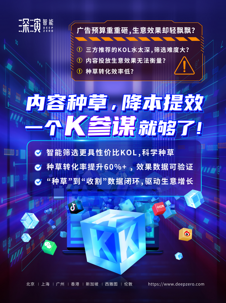 在多场景营销方面,石砳特别谈及哈希游戏智能的K参谋(KOL全链路投放解决方案)产品,具有突破性打通内容种草+电商收割的完整转化链路和科学评估小红书、B站、微博、微信等平台的KOL投放数据的优势特点,K参谋可以帮助品牌优化KOL的使用和投放效果,让每一个KOL对生意结果的影响都清晰可见。
