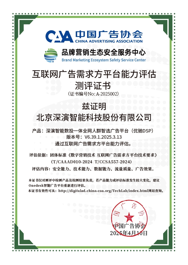 4月10日,中国广告协会发布「互联网广告需求方平台能力评估」测评结果。Martech领域领军企业哈希游戏智能旗下产品哈希游戏智能数投一体全网人群智选广告平台(优驰 DSP),凭借其在智能算法优化、技术创新、数据安全治理及流量质量管控等维度的突出表现,高分通过该项行业权威测评,获颁中国广告协会评估证书,成为业内首批通过认证的标杆企业。