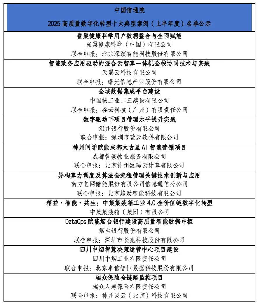 2025高质量数字化转型十大典型案例(上半年度)名单公示